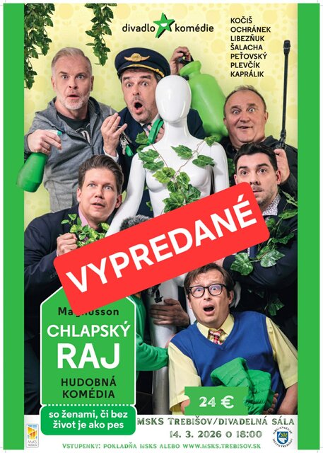 Pripravte sa na večer plný smiechu, šialených situácií a hudobnej zábavy v podaní skvelého hereckého obsadenia. Hudobná komédia CHLAPSKÝ RAJ od Kristofa Magnussona vám ukáže, že so ženami, či bez – život je ako pes!Čaká vás poriadna dávka humoru, nečakané momenty a energia, ktorá rozosmeje celé publikum.